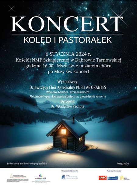 Parafia pw. NMP Szkaplerznej w Dąbrowie Tarnowskiej serdecznie zaprasza na wyjątkowy Koncert Kolęd i Pastorałek Dziewczęcego Chóru Katedralnego Puellae Orantes.