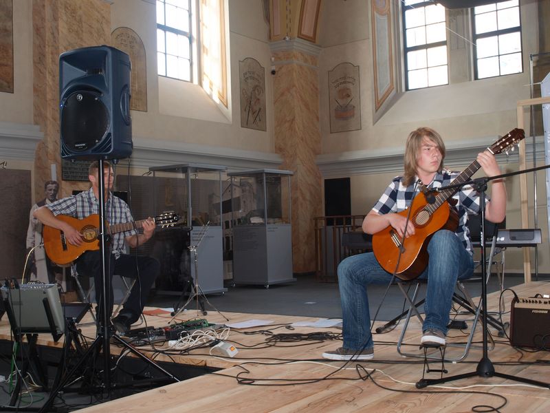 Zaprezentowali utwory muzyczne w pięknej oprawie głównej sali pełnej niesamowitych malowideł we wnętrzu byłej synagogi dąbrowskiej, a obecnie – Ośrodka Spotkania Kultur.