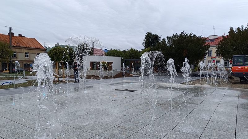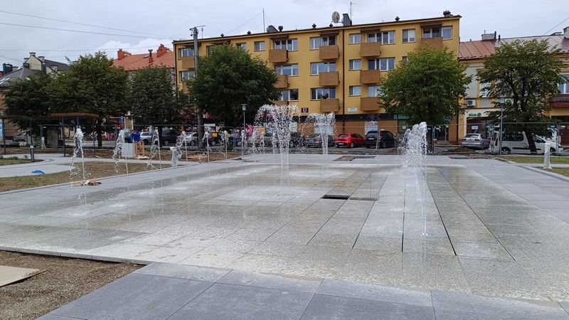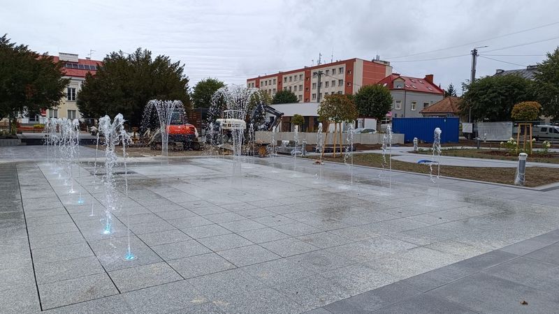 Na rynku w Dąbrowie Tarnowskiej są już gotowe wszystkie alejki spacerowe, dwa pawilony usługowe i przede wszystkim fontanna. Instalacja przeszła już testy, działa bez zarzutu. Została przygotowana na okres zimowy, wystartuje na wiosnę.
