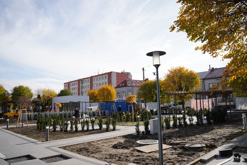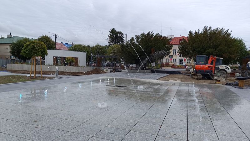 Do dokończenia zostały jeszcze ławki i drobne elementy wykończeniowe przy znajdujących się na rynku budynkach. Jeden będzie budynkiem usługowym, a drugi – gastronomicznym. Wykonawca czeka jeszcze na dostawę największych drzew, które zasadzone mają być przy alejkach. Będą to między innymi platany.