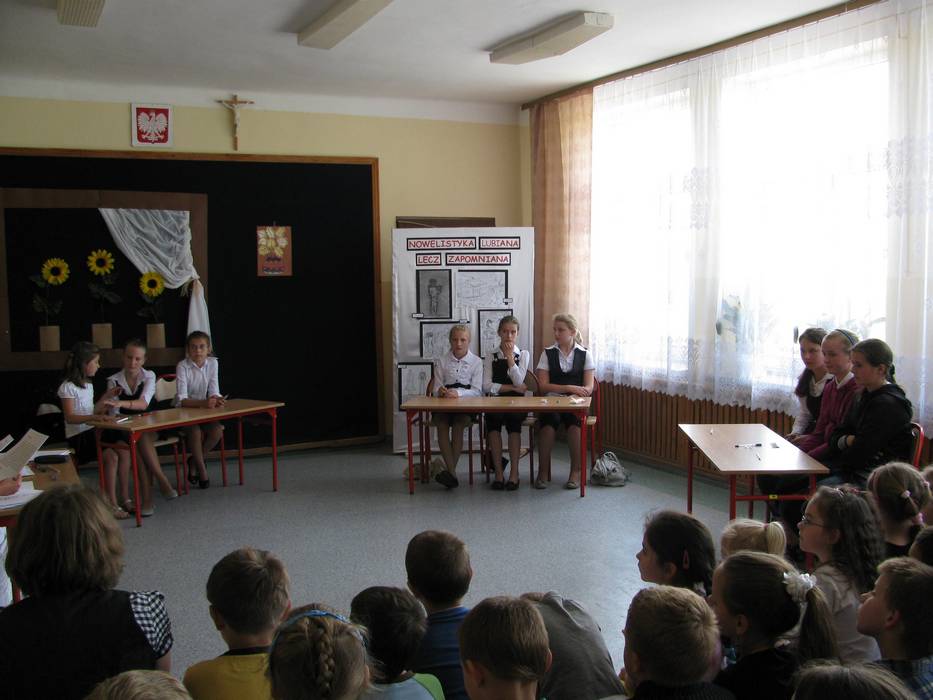 Jego celem było m.in. : doskonalenie techniki czytania oraz umiejętności czytania ze zrozumieniem, zainteresowanie uczniów nowelistyką polską, sprawdzenie znajomości przeczytanych utworów, podniesienie poziomu czytelnictwa wśród uczniów klas IV-VI, zapewnienie możliwości indywidualnego sukcesu, wdrażanie zdrowej rywalizacji, propagowanie aktywności i kultury czytelniczej. W naszej szkole gościły 3-osobowe drużyny uczniów klas IV-VI z Gruszowa Wielkiego i Smęgorzowa, które przybyły wraz ze swoimi nauczycielami języka polskiego p. Bogusławą Serwicką i p. Elżbietą Kaczocha.