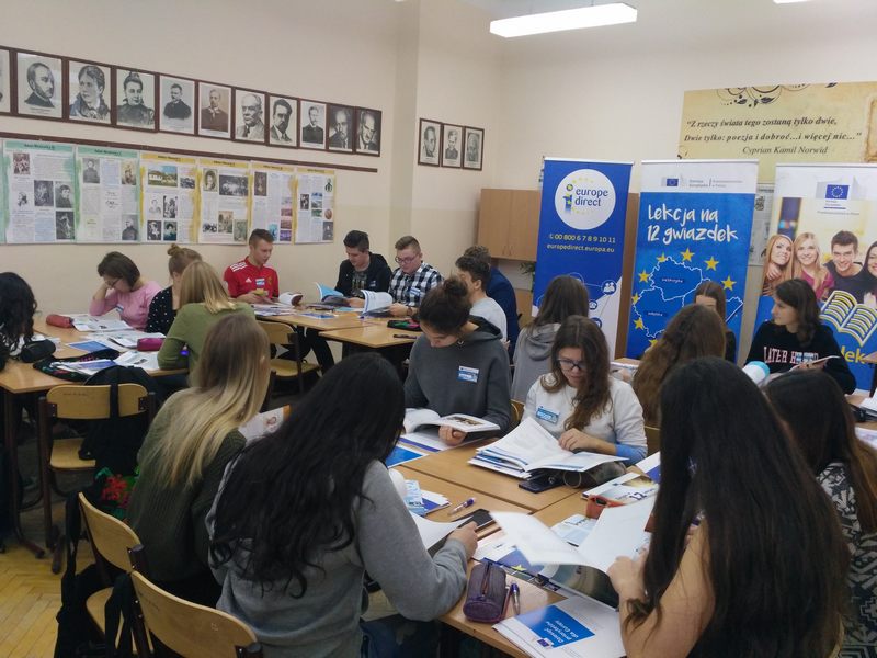 Spotkanie z tematem szczegółowym UNIA I ŚWIAT: Unia Europejska a kryzys migracyjny w ramach III edycji kampanii edukacyjnej „Lekcja na 12 gwiazdek”.