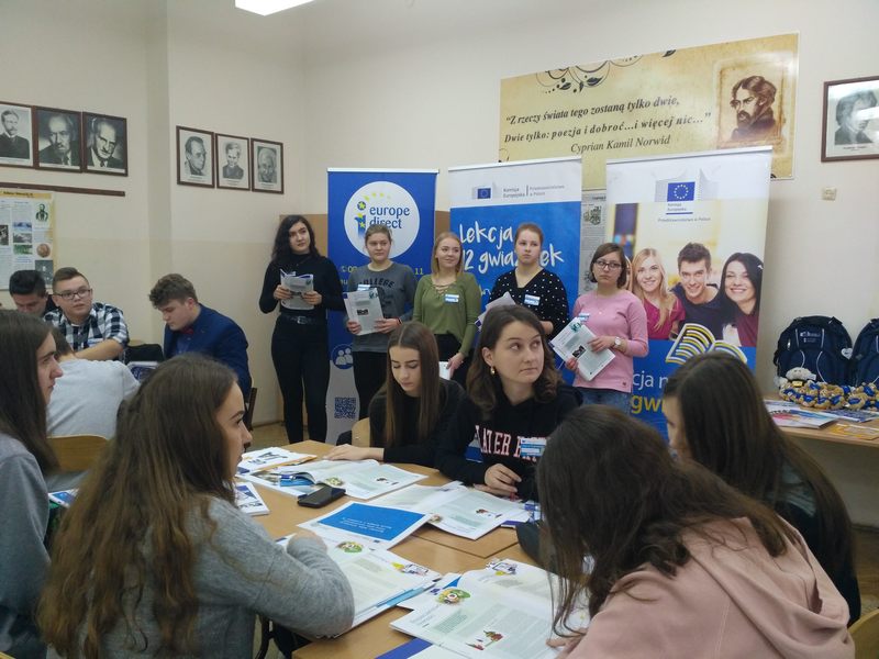 Najciekawsze było poruszanie tematów, z którymi spotykamy się na co dzień, lecz nie potrafimy się w nich odnaleźć.  – oraz – Zrozumiałam pojęcie UE i zmieniłam swoje myślenie co do uchodźców – podkreślali  uczniowie Zespołu Szkół Ponadgimnazjalnych nr 1 w Dąbrowie Tarnowskiej po warsztatach europejskich, które 11 grudnia 2018 r. przeprowadzono w ich szkole.