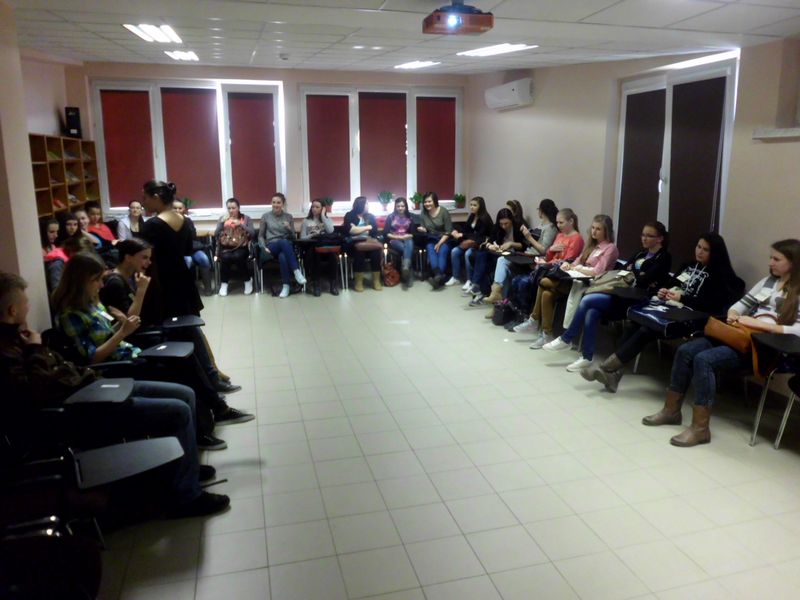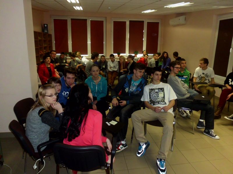 W spotkaniu wzięło udział 79 osób – uczniowie Zespołu Szkół Ponadgimnazjalnych nr 1 i 2 w Dąbrowie Tarnowskiej. Dowiedzieli się, jak wygląda dzień pracy młodej profesjonalistki, wspólnie rozmawiali o nowych zawodach i zastanawiali się, które z nich są najbardziej przyszłościowe. Całość miała charakter warsztatowy – były quizy, pytania, wspólne ćwiczenia. Prowadząca- osoba sympatyczna i niezwykle ciepła w ciekawy sposób opowiadała o swoim życiu, wielu trudnościach i sukcesach jakie ją spotkały oraz wyzwaniach które ciągle podejmuje. Sama nie wiele starsza od uczestników potrafiła zaangażować młodzież do dyskusji i czynnego uczestnictwa w zajęciach.
