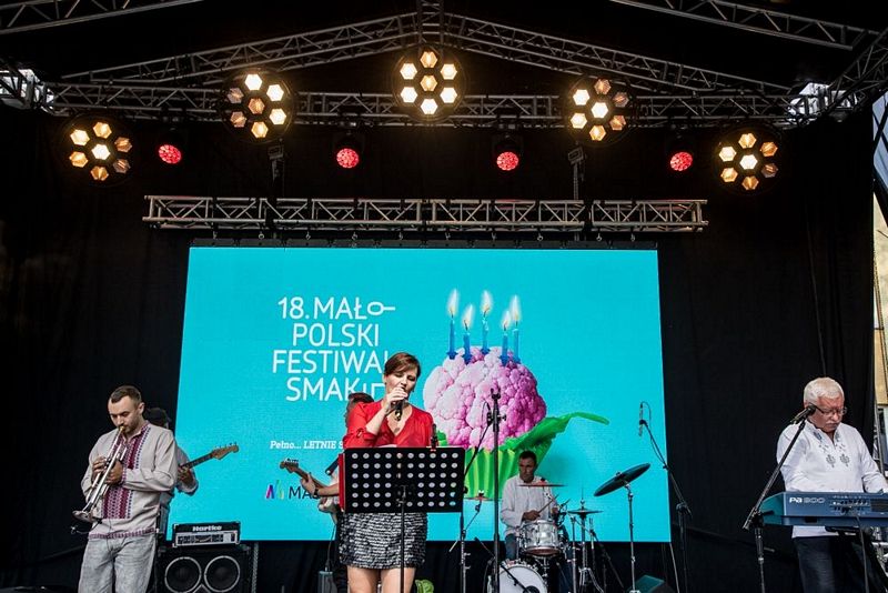 Szefem festiwalowej kuchni w Dąbrowie Tarnowskiej był Andrzej Polan, znakomity kucharz i restaurator, wtórowały mu członkinie Kół Gospodyń Wiejskich i lokalni producenci, którzy wystawili swoje stoiska z małopolskimi przysmakami. Koneserzy i smakosze mogli odnaleźć tu m.in. złociste miody, chrupiące pieczywo, pachnące wyroby z lawendy, aromatyczne wędliny, zachwycające wyglądem i smakiem ciasta, rozmaite przetwory i wiele innych. Było smacznie, pysznie, radośnie i kolorowo!