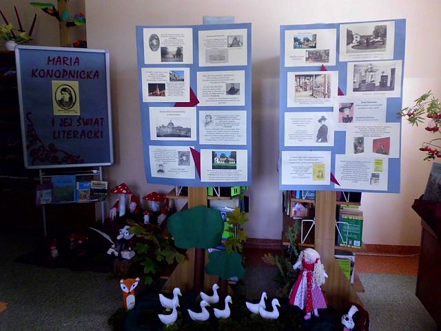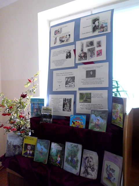 Prezentowana wystawa zawiera wiele ciekawych wątków z życia i twórczości literackiej wzbogaconych o zdjęcia miejsc związanych z jej domem rodzinnym w Suwałkach, Kaliszu, Warszawie, dworku w Żarnowcu. Są także informacje na temat śmierci poetki i miejsc pamięci. Ekspozycję wzbogacono o dzieła autorskie i publikacje krytyków literackich, oraz plastyczne scenki do bajki „O krasnoludkach i sierotce Marysi”. Organizując wystawę staraliśmy się ukazać mądrą, pełną dobroci i szlachetnego serca, postać poetki.