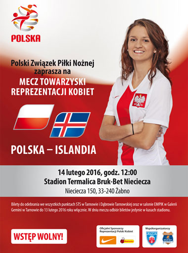 14.02.2016. (niedziela) o godz. 12:00 na stadionie Termalica Bruk-Bet w Niecieczy zostanie rozegrany mecz Reprezentacji Kobiet Polski i Islandii. Wstęp wolny.