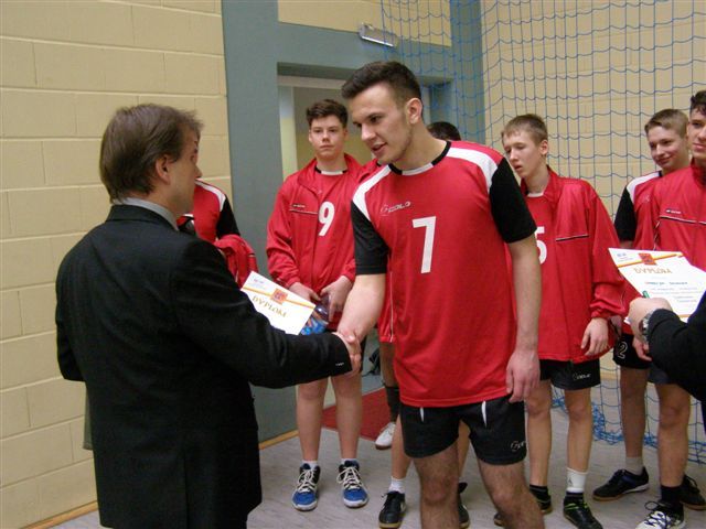Nagrody dla zwycięskich drużyn wręczali: Marek Małek – v-ce prezes Małopolskiego Szkolnego Związku Sportowego i Witold Reczek – kierownik referatu UM Kultury fizycznej i sportu.
