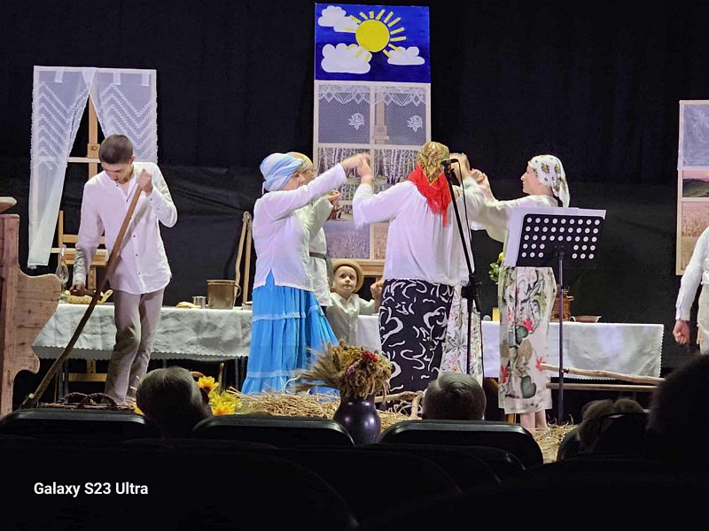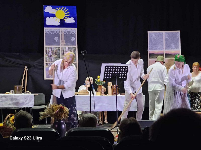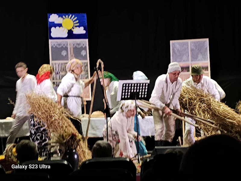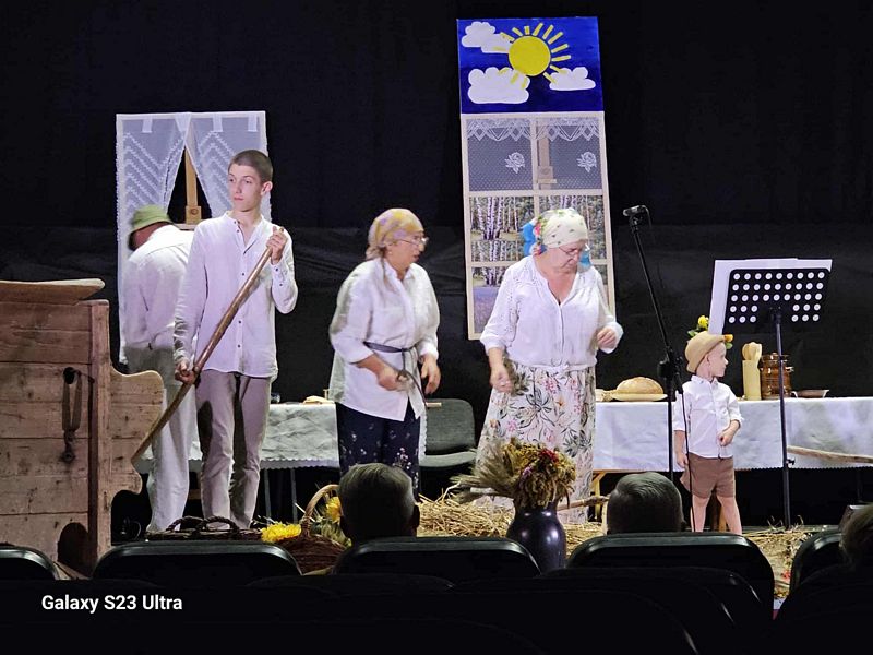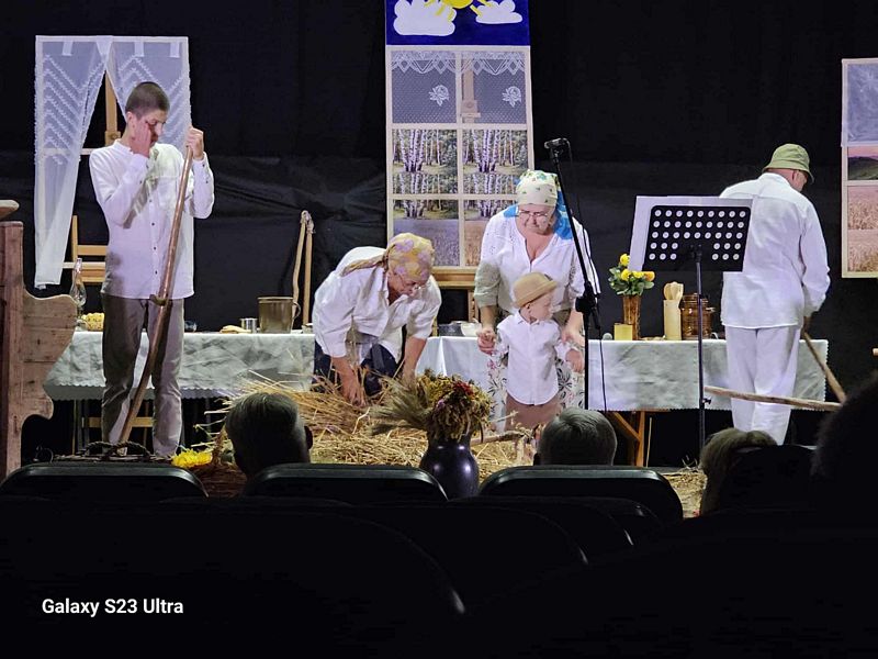 Osią fabularną premierowego spektaklu „Jak to downi żniwowali” były obrzędy i zwyczaje związane ze żniwami oraz ich zakończeniem, czyli dożynkami. Oprócz prac polowych, które były podstawą żniw, zwłaszcza ich zakończeniu towarzyszyła radość, taniec, zabawa i ludowe przyśpiewki związane z tym rytuałem. We wspaniały sposób te dawne zwyczaje oddali na deskach DDK „Morzychnianie”, przechowując w zbiorowej pamięci „Jak to downi żniwowali”.