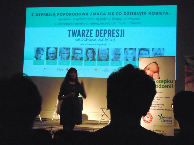 Wcześniej odbyło się spotkanie z Anną Morawską, autorką książki „Depresja poporodowa. Możesz z nią wygrać.” i inicjatorką kampanii społecznej na ten temat. W Polsce tą chorobą dotkniętych jest od 10 do 20 % mam. Jak mówią panie, które zdecydowały się opowiedzieć o chorobie, niemożność pokochania dziecka i widzenie macierzyństwa w ciemnych barwach może trwać długo. Choć zdarza się, że problemy samoczynnie ustąpią, to na ogół symptomy choroby pogłębiają się i niezbędne jest leczenie. Stan jak po wyjęciu baterii z urządzenia elektrycznego, brak apetytu, bezsenność, płacz nad łóżeczkiem dziecka. Sytuacja, w której te objawy trwają kilka dni po porodzie nie powinna nikogo niepokoić. Matki z powodu burzy hormonalnej są często rozchwiane emocjonalnie. Jeśli jednak objawy nie mijają po miesiącu, warto skontaktować się ze specjalistą: psychologiem lub psychiatrą. Jedynie leczenie może sprawić, że wszystko wróci na właściwe tory. W praktyce kobiety nie chcą mówić o swojej walce z depresją. Często wynika to ze wstydu i wyrzutów sumienia, dotyczących agresywnych myśli w stosunku do dziecka. Chore myślą, że są złymi matkami, bo nie wiedzą, że ich stan to wynik choroby. Stąd także pomysł na kampanię społeczną, która ma spowodować, że kobiety będą częściej korzystać z pomocy specjalistów.