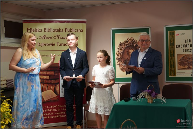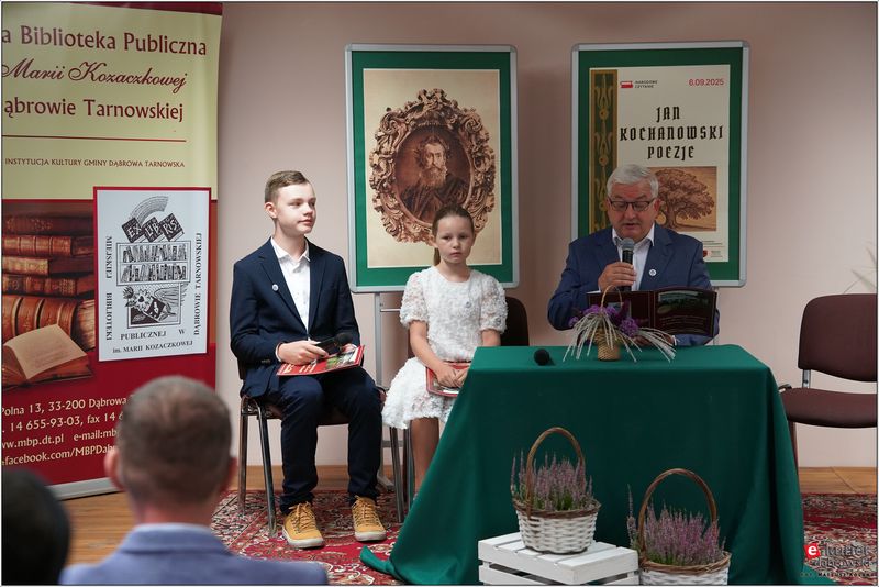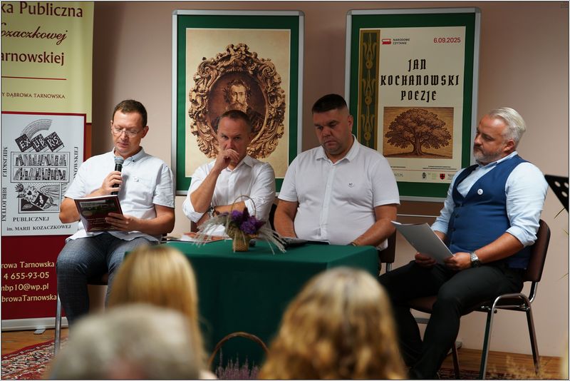 – Można z jego poetyckiej bogatej spuścizny czerpać do dzisiaj. Jego dzieła są nadal aktualne, o czym się wszyscy przekonamy. Jak sobie państwo przypominają, Kochanowski jest jak nasze życie: proste radości, smutki, refleksje nad naturą ludzką, czasami niewyobrażalne tragedie. To wszystko sprawia, że jego utwory są ponadczasowe. Dla tych uniwersalnych treści warto zmierzyć się z archaicznym językiem. Jego dzieła w języku polskim (…) stworzyły podwaliny do rozwoju narodowej literatury polskiej. Można by nawet pokusić się o twierdzenie, że treści humanistyczne zawarte w polskich utworach Kochanowskiego były aż do tego czasu wyrażane głównie po łacinie, a on dał sobie i innym twórcom „zielone światło”, by robić to po polsku. I te głęboko humanistyczne treści będziemy dzisiaj zgłębiać – mówiły dyrektor dąbrowskiej biblioteki, Anna Jastrzębiec-Witowska i kierownik dąbrowskiej filii Biblioteki Pedagogicznej w Tarnowie, Agata Obara-Giera.