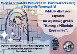 Serdecznie zapraszamy do zapoznania się z „Newsami o Mikołaju Koperniku” wyeksponowanymi w holu na I piętrze MBP w godzinach pracy Oddziału dla Dzieci. Zorganizowane grupy proszone są o wcześniejszy kontakt pod nr. tel. 14 655 93 03 wew.17.