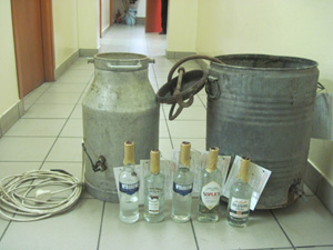 22 stycznia br. w związku z uzyskaną informacją, że na terenie jednej z podszczucińskich miejscowości dochodzi do nielegalnego wyrobu alkoholu etylowego w postaci tzw. bimbru, szczucińscy policjanci zabezpieczyli na prywatnej posesji aparaturę do destylacji bimbru w postaci dwóch baniek z zamontowanymi grzałkami oraz 5 butelek wypełnionych gotowym wyrobem.