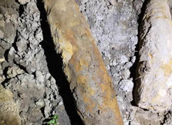 W piątek (21.04. br.) w godzinach południowych, oficer dyżurny Komendy Powiatowej Policji w Dąbrowie Tarnowskiej otrzymał zgłoszenie dotyczące znalezienia w Nieczajnej Górnej na terenie posesji prywatnej wystających z nawiezionej świeżo ziemi przedmiotów przypominających niewybuchy. Na miejsce został skierowany policjant zajmujący się rozpoznaniem minersko-pirotechnicznym, który potwierdził, że są to dwa pociski artyleryjskie o długości ok. 40 cm, pochodzące prawdopodobnie z czasów II Wojny Światowej. Niewybuchy oraz miejsce ich odnalezienia było zabezpieczane przez policjantów do czasu przyjazdu saperów.
