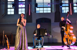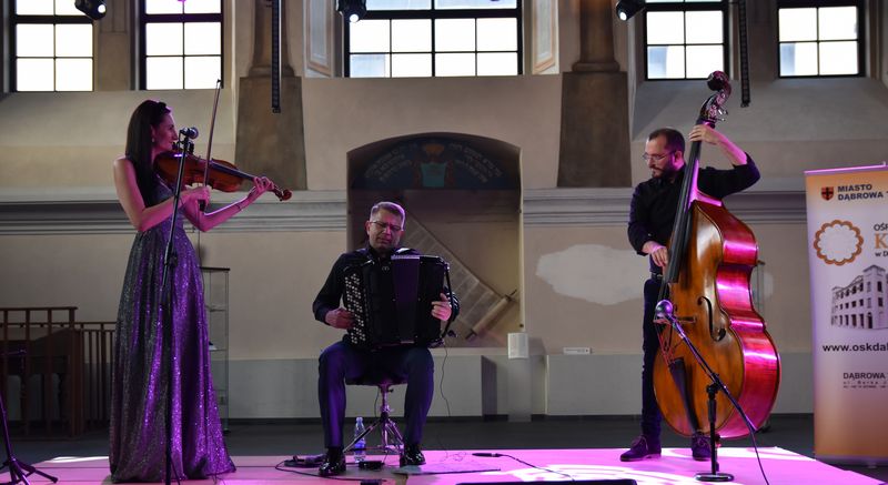 Trio bardzo spodobało się dąbrowskiej publiczności, o czym świadczą podwójne bisy muzyków: Karoliny Stasiowskiej (wokal, skrzypce, altówka), Marcina Wierciocha (akordeon, słowo wiążące), Piotra Południaka (kontrabas). Nad dźwiękiem bardzo wrażliwie czuwał Bartłomiej Więcek, światłem operował Paweł Chojnowski.