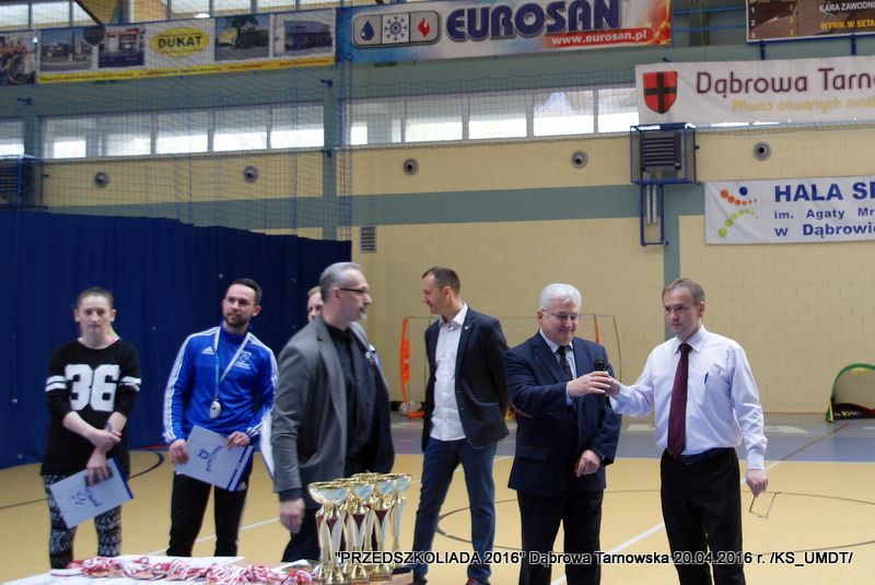 20 kwietnia 2016 w Hali Sportowej im. Agaty Mróz-Olszewskiej w Dąbrowie Tarnowskiej odbyły się I Sportowe Mistrzostwa Przedszkoli o Puchar Burmistrza Dąbrowy Tarnowskiej „PRZEDSZKOLIADA 2016”.