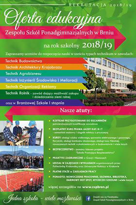 Zespół Szkół Ponadgimnazjalych w Brniu ogłasza nabór do klas pierwszych technikum oraz branżowej szkoły I stopnia na rok szkolny 2018/2019.