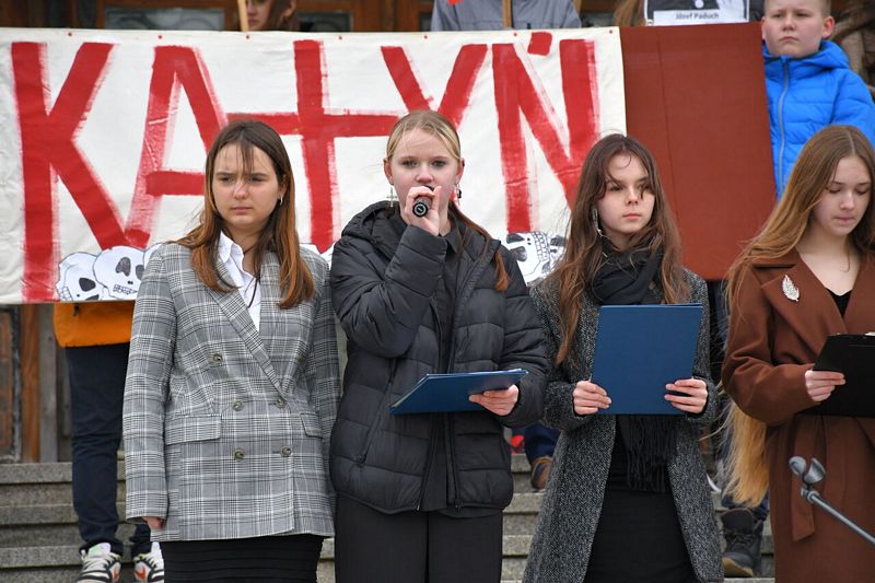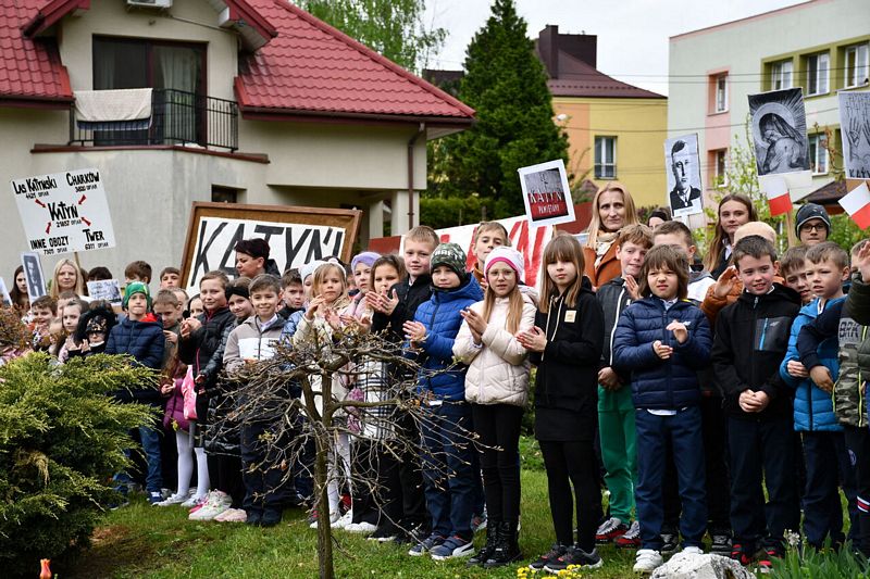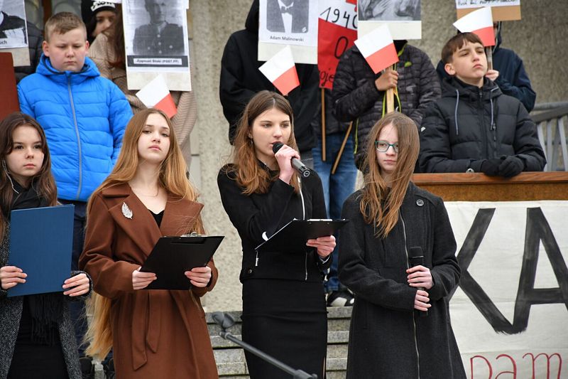 Wszystkich zgromadzonych powitał burmistrz Krzysztof Kaczmarski, który wygłosił również okolicznościowe przemówienie. Modlitwę poprowadził ks. Zbigniew Szewczyk z dąbrowskiej parafii, a część artystyczną zaprezentowali uczniowie ze Szkoły Podstawowej nr 3 im. Bohaterów Powiśla Dąbrowskiego. Dzieci i młodzież przygotowały też biało-czerwone flagi, transparenty i portrety naszych rodaków zamordowanych w 1940 roku. Z naszego regionu zginęli wówczas: ppor. Jan Brożek, kpt. Stanisław Juras, por. Stanisław Leszek Szpak, mjr Marcin Borek, por. Stanisław Kaczówka, por. Bolesław Berbeka, por. Adam Malinowski, asp. Albin Basista, asp. Zygmunt Śliski, asp. Józef Paduch.