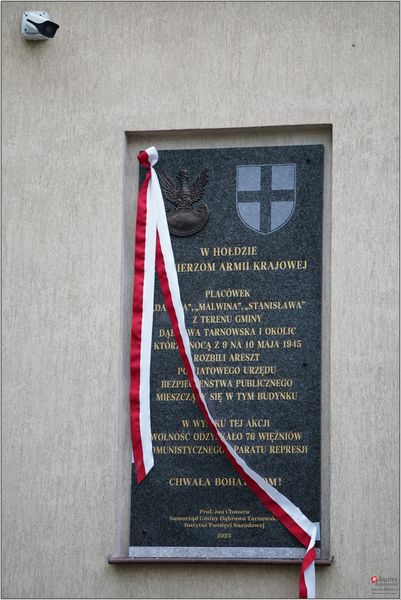 Dokonano poświęcenia, umieszczonej na budynku dąbrowskiego Sądu Rejonowego, tablicy upamiętniającej akcję rozbicia więzienia i uwolnienia przez żołnierzy Armii Krajowej 76 więźniów Powiatowego Urzędu Bezpieczeństwa Publicznego w Dąbrowie Tarnowskiej.