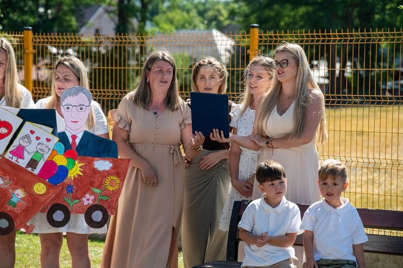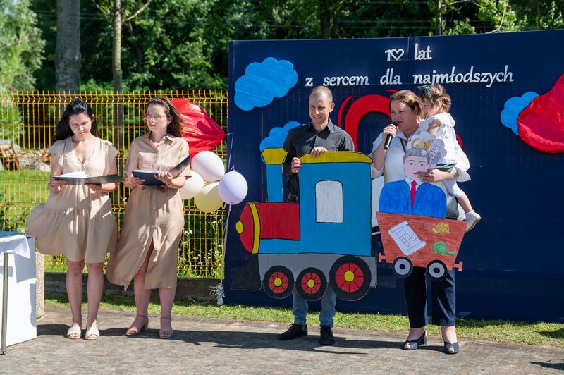 Były też podziękowania dla samorządowców – żłobek został oficjalnie otwarty w 2015 r. za kadencji wójta Marka Lupy. Dziękowano również obecnej władzy samorządowej za wspieranie rozwoju placówki, która do dziś wyróżnia się na tle wielu innych tego typu obiektów. Najważniejsze słowa uznania należą się kadrze żłobka, która z zaangażowaniem otacza opieką kolejne roczniki dzieci, co przekłada się rokrocznie na zaufanie ze strony rodziców.