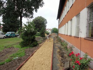 Wykonane zostaną: droga dojazdowa, parking za i przed szkołą, chodniki i opaski wokół szkoły i przedszkola, nowe ogrodzenie na działce gminnej obok domu nauczyciela.