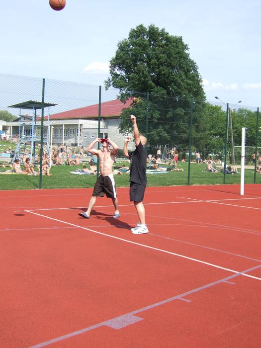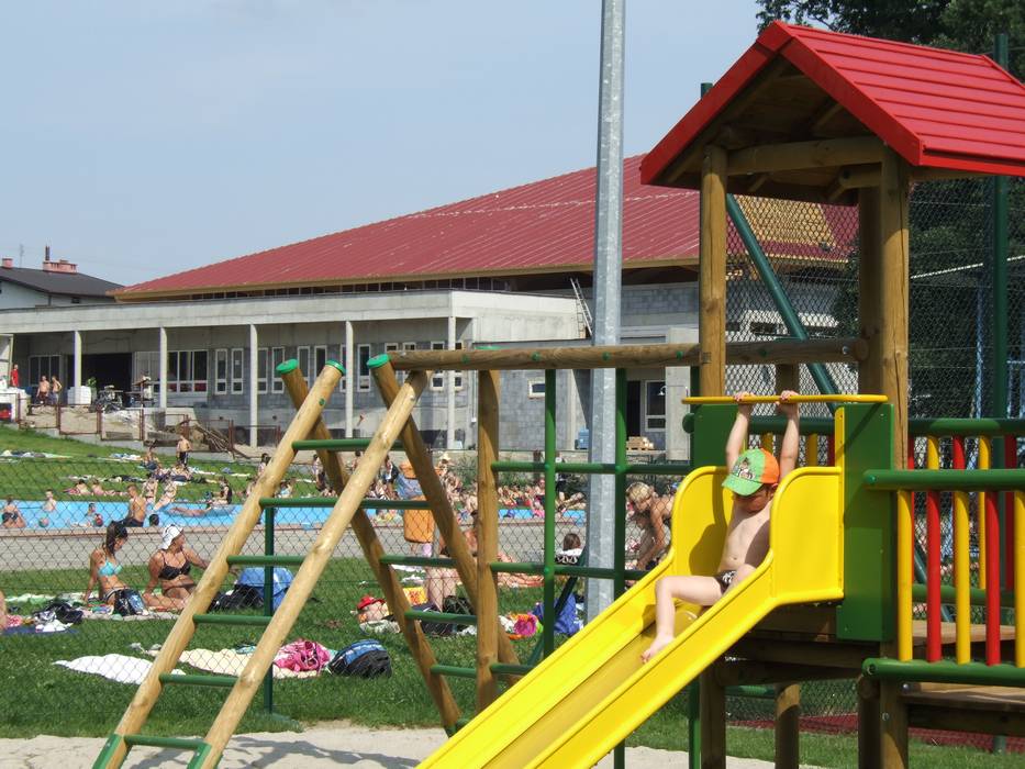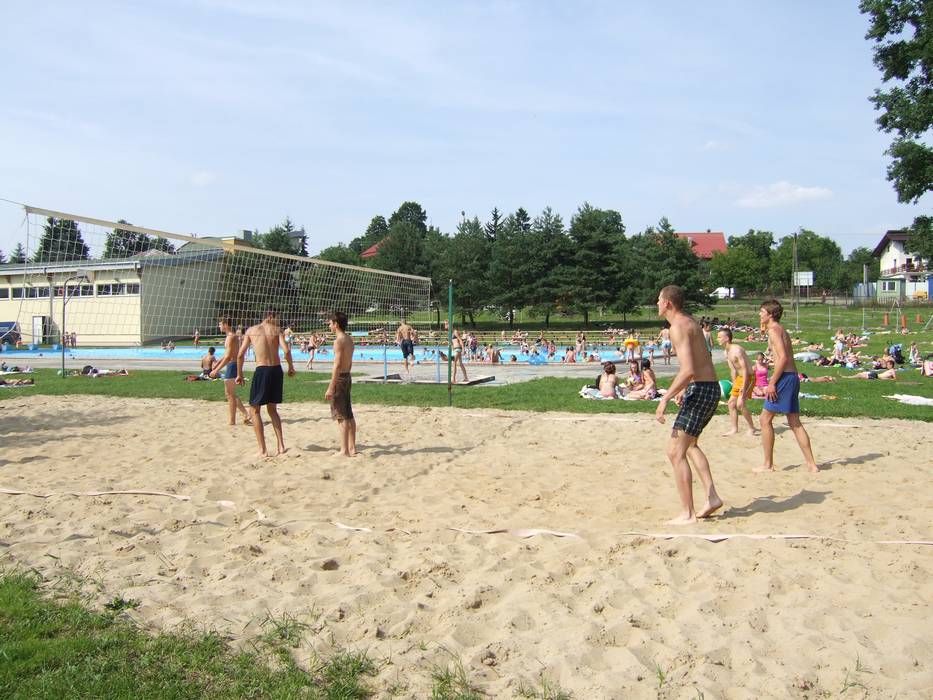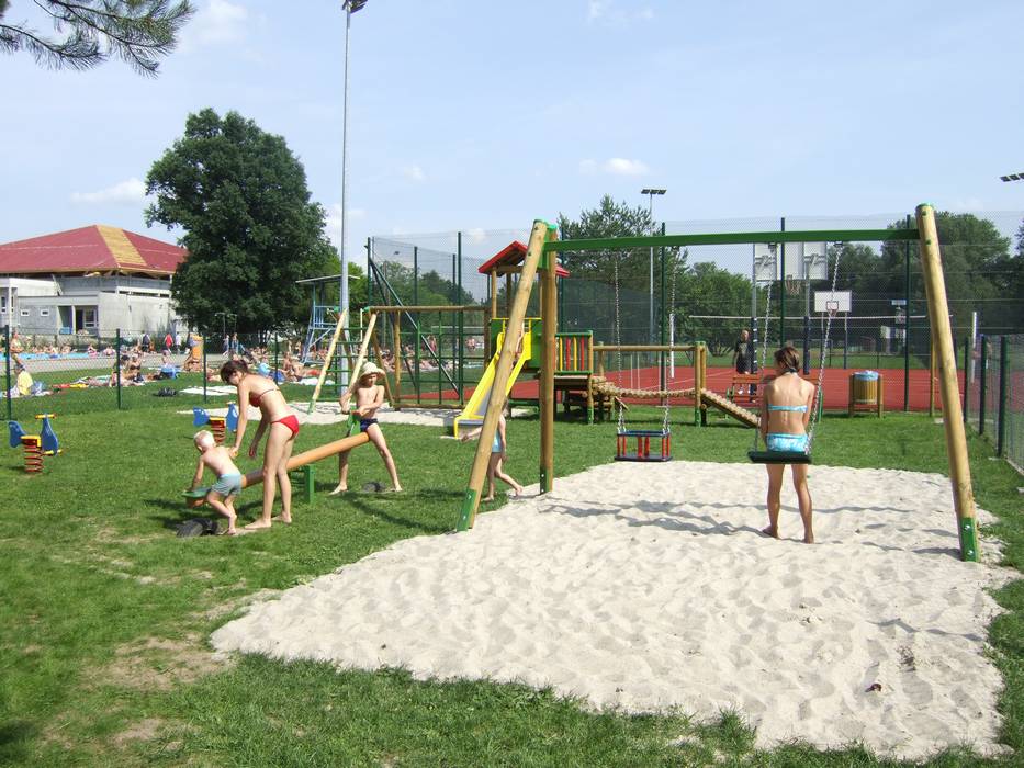 Oprócz basenu kąpielowego 50mx20m, można skorzystać również z brodzika dla dzieci, placu zabaw, boiska do siatkówki, siatkówki plażowej, piłki nożnej i koszykówki.