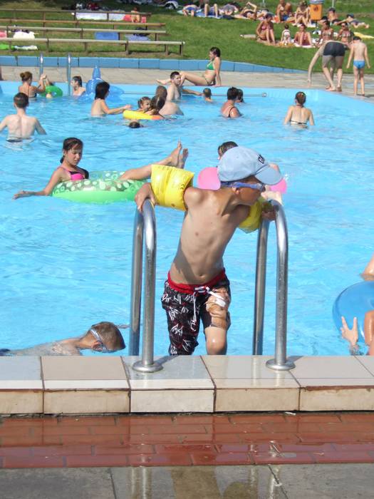 Fajny basen,szkoda tylko że jest również dla durnych przepisów.Byłem z dzieckiem,na moje nieszczęście trafiłem w czasie kiedy z basenu korzystała czterdziestoosobowa grupa ze śląska.Zajmowali oni najpłytszą część basenu grając w piłkę i bawiąc się wybornie.Ponieważ pozostałe 2/3 basenu zajmowały tylko 2 osoby postanowiłem skorzystać ze środkowej części basenu na której nikogo nie było.Po chwili zostałem wyproszony przez ratowniczkę z tej części basenu dlatego że dziecko pływało w kole[ratowniczka będzie się naddawała na urzędnika dla którego liczy się przepis nie człowiek].Pozostał mi niesmak po pobycie na basenie i wrażenie że ratownicy wolą się gapić w 2\3 pustego basenu niż pozwolić ludziom korzystać z niego.