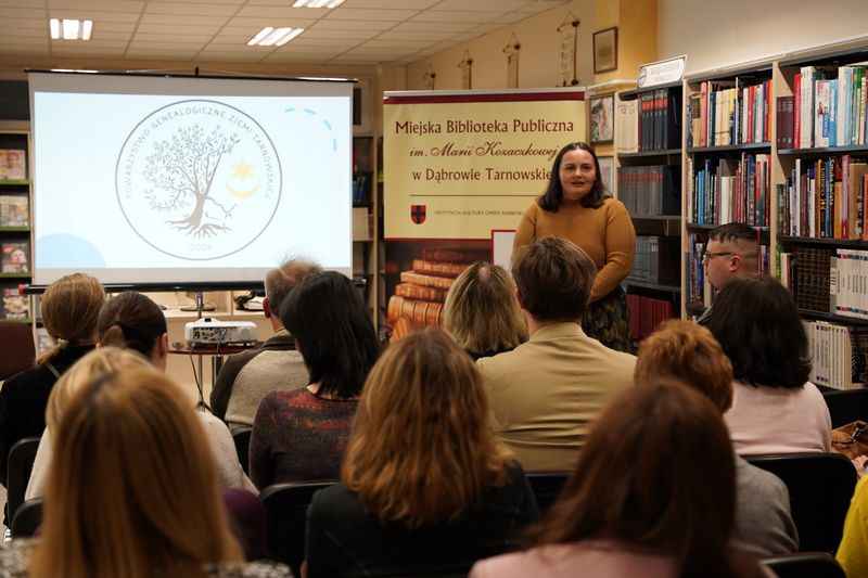 W dniu 19.11.2024 roku w Miejskiej Bibliotece Publicznej w Dąbrowie Tarnowskiej odbył się inspirujący wykład pt. „Odkrywanie korzeni – fascynująca podróż w świat genealogii”, który wygłosiła Paulina Starzec – prezes Towarzystwa Genealogicznego Ziemi Tarnowskiej.