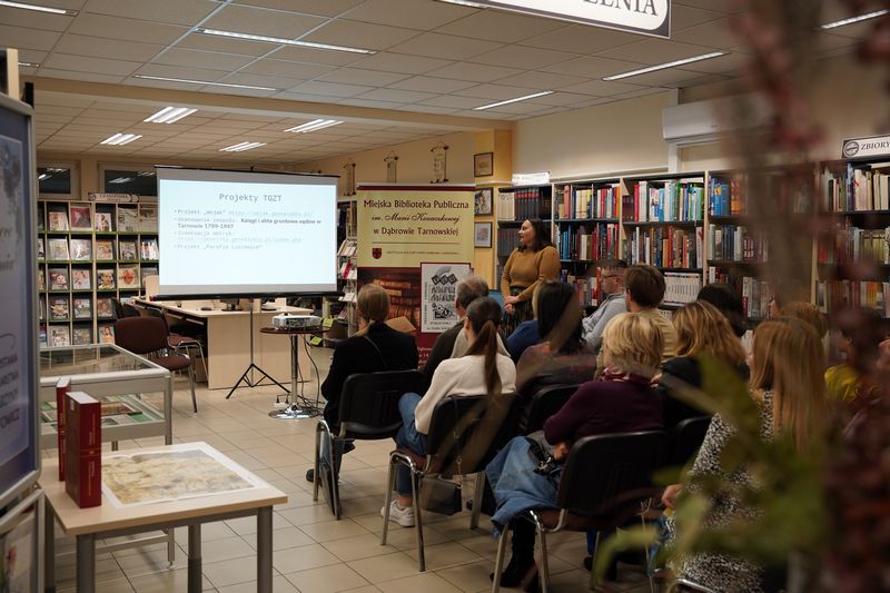 Prezentacja obejmowała praktyczne wskazówki dotyczące korzystania z archiwów, ksiąg parafialnych, aktów stanu cywilnego czy dostępnych online baz danych. Szczególną uwagę poświęcono zasobom lokalnym, takim jak Archiwum Narodowe w Krakowie Oddział w Tarnowie i Archiwum Diecezjalne w Tarnowie. Spotkanie było wyjątkową okazją do wymiany doświadczeń i zainspirowania się do dalszych poszukiwań. Wykład zakończyła żywa dyskusja, podczas której uczestnicy mieli możliwość zadawania pytań i dzielenia się swoimi doświadczeniami. Na wątpliwości i pytania odpowiadali Paulina Starzec i Konrad Jachym z Towarzystwa Genealogicznego Ziemi Tarnowskiej.