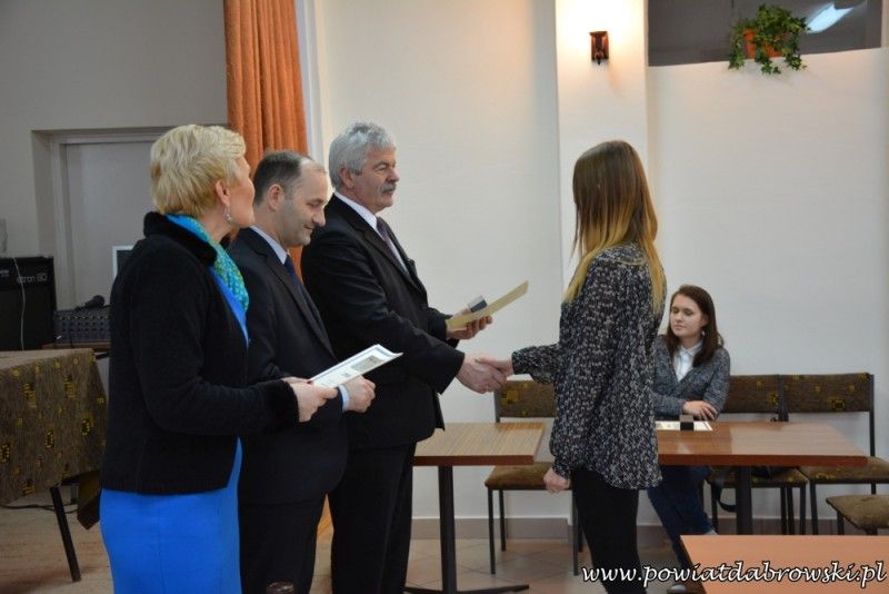 Nagrody oraz dyplomy, ufundowane przez Zarząd Powiatu w Dąbrowie Tarnowskiej, wręczali Tadeusz Kwiatkowski Starosta Dąbrowski oraz Marek Sztyler Wicedyrektor Powiatowego Centrum Edukacji i Kompetencji Zawodowych w Szczucinie, równocześnie gratulując zwycięzcom.
