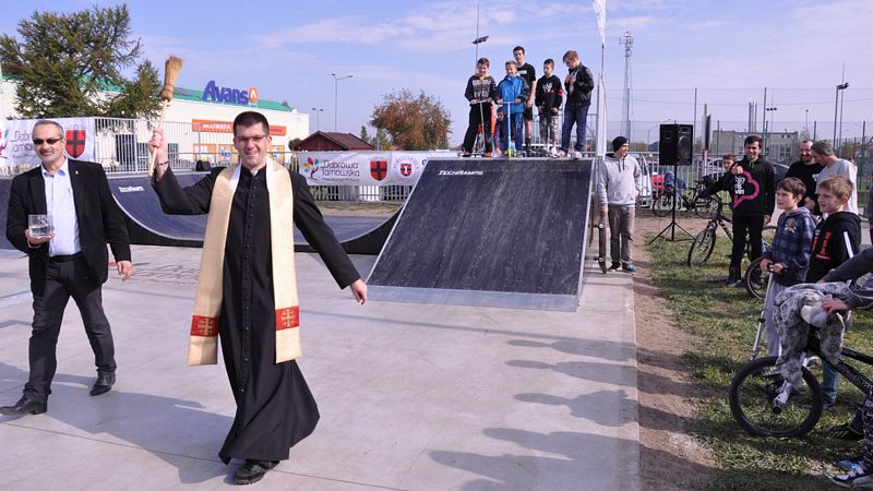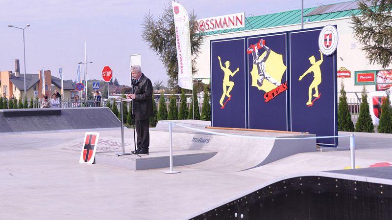 Podkreślił również wkład Tomasza Budyna i Andrzeja Gizy – najmłodszych radnych, którzy lobbowali za powstaniem tego obiektu. Żaden z obecnych na imprezie radnych, dyrektorów instytucji miejskich i powiatowych oraz władz nie spróbował swoich sił w skatingu.