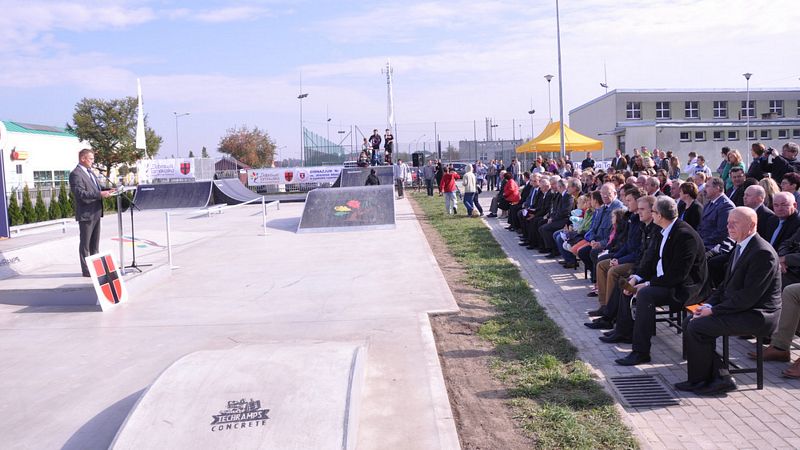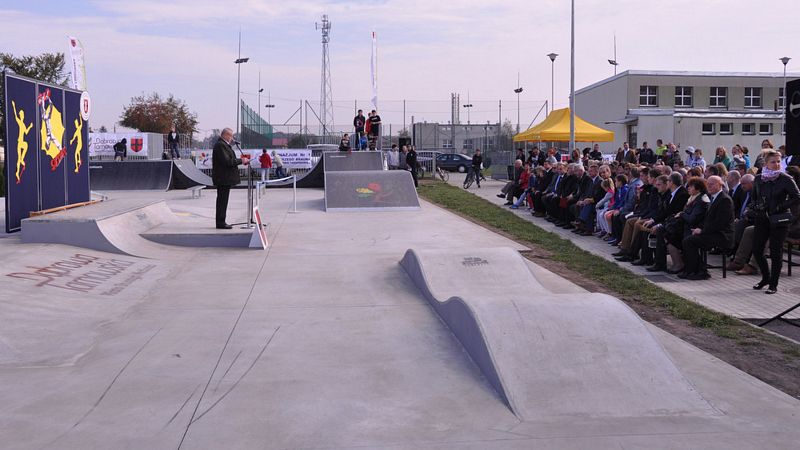 Pierwszy wystąpił burmistrz, który poinformował, że nowy obiekt przy Gimnazjum nr 1, to prawie 600 m2 płyty betonowej, o nawierzchni specjalnie przystosowanej do uprawiania sportów ekstremalnych. Przy przestrzeganiu odpowiednich zaleceń, uprawianie sportu na tym obiekcie jest porównywalne, pod względem bezpieczeństwa, z koszykówką i piłką nożną. Skatepark jest objęty monitoringiem wizyjnym.