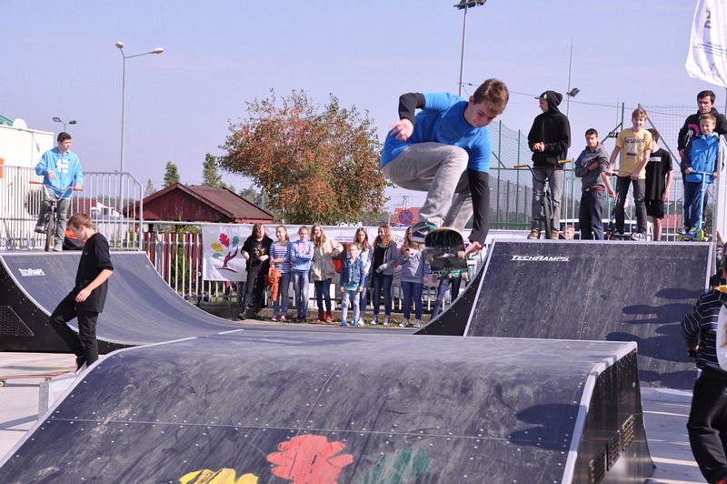 Po części oficjalnej i poświęceniu nowego obiektu przyszedł czas na najciekawszą część imprezy: pokazy mistrzów i amatorów skatingu i pierwsze mini zawody w tej dziedzinie.