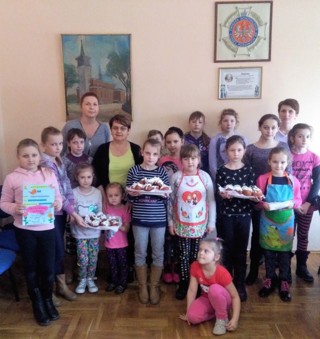 Każdy z wielkim zapałem i twórczą radością ozdabiał tłustoczwartkowe specjały lukrem, a także kolorowymi posypkami. Po skosztowaniu wypieków, część została jak „najcenniejszy skarb” zapakowana i zabrana do domu. Uczestnicy na koniec warsztatów podziękowali pani Teresie i pani Katarzynie za pomoc i cenne wskazówki w sztuce kulinarnej. Mamy nadzieję, że ten stary zwyczaj na dobre zadomowił się w naszej bibliotece i będzie okazją do poznawania i kultywowania zwyczajów i tradycji polskich.