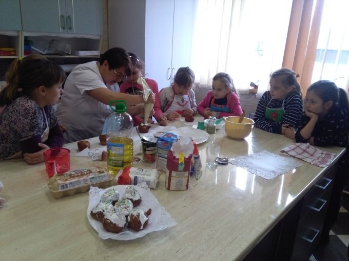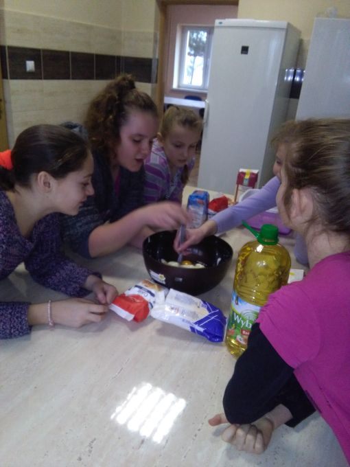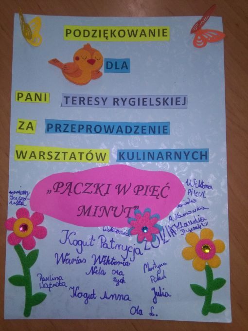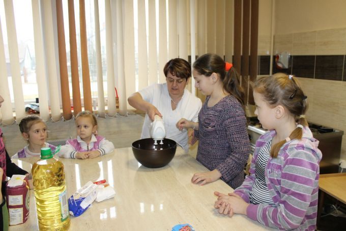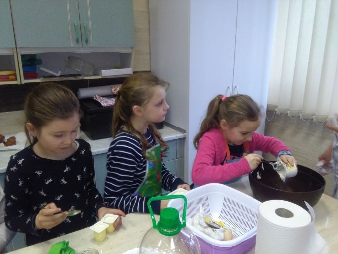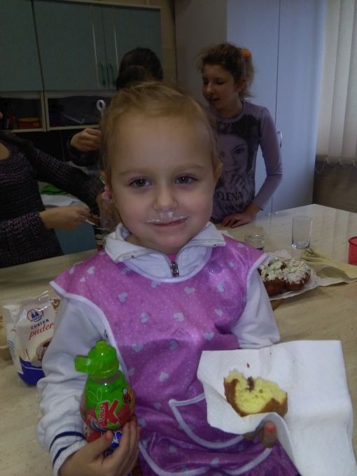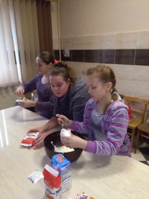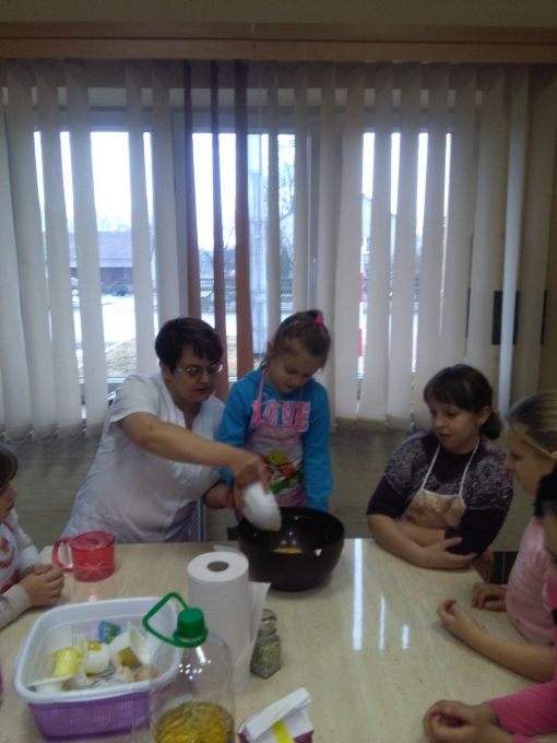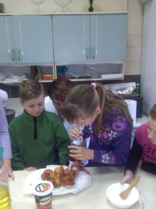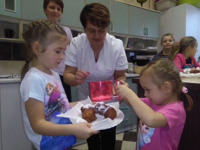 A to wszystko za sprawą pani Teresy Rygielskiej, która z wielką pasją i zaangażowaniem przeprowadziła kolejne warsztaty kulinarne – tym razem pieczenia pączków. Od godzin przedpołudniowych można było wyczuć zapach wypieków. Mali kucharze sami przygotowywali ciasto według podanego im przepisu. Dzieciaki nie mogły doczekać się momentu, gdy ich pączusie będą gotowe i będzie można je udekorować. Przyszła i na to pora!