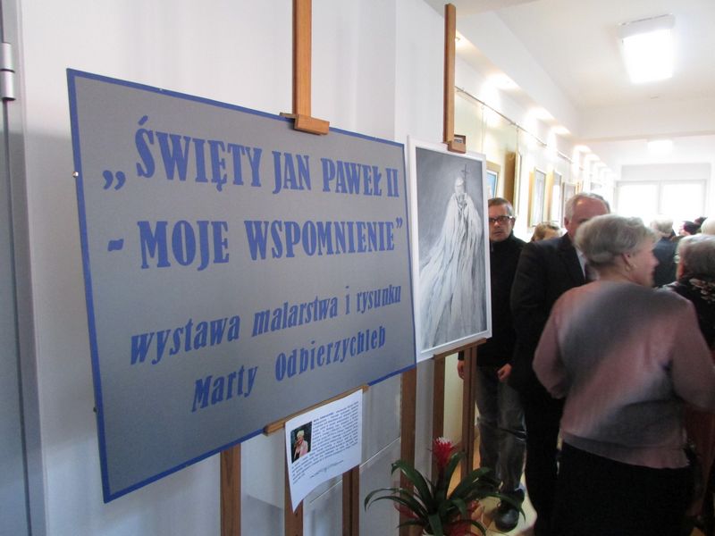W programie obchodów 10. rocznicy śmierci papieża Polaka znajdował się również wernisaż Marty Odbierzychleb „Święty Jan Paweł II – moje wspomnienie”. Przybyli goście mogli podziwiać niezwykłe i niepowtarzalne dzieła. Artystka zaznaczyła, że maluje z serca, a postać papieża jest jej szczególnie bliska. „Tak naprawdę to Jan Paweł II mnie trochę znalazł”, skomentowała pani Marta. Wystawa malarstwa i rysunku będzie dostępna w MBP do 30 maja.
