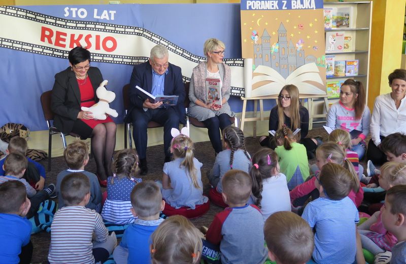 W tym dniu odbyło się rozpoczęcie nowej, kolejnej już serii spotkań czytelniczych w ramach „Poranka z Bajką”, w której w roku szkolnym 2017/2018 udział będą brały „Motylki” i „Leśne Ludki” z Przedszkola Publicznego nr 1 w naszym mieście. Uroczystej inauguracji dokonał burmistrz Dąbrowy Tarnowskiej pan Krzysztof Kaczmarski i Dyrektor biblioteki pani Jadwiga Kusior.