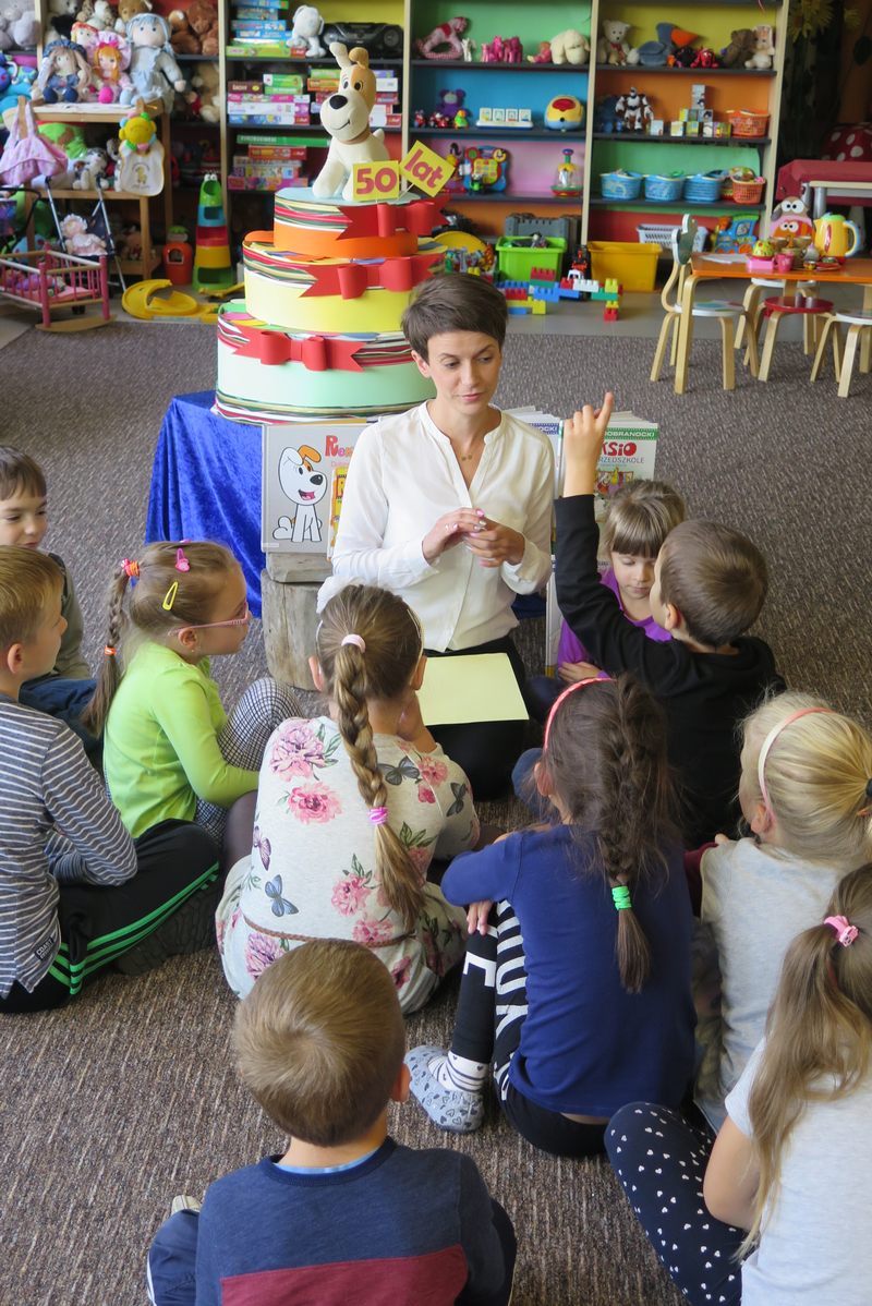 Ten sympatyczny psiak w tym roku obchodzi swoje 50. urodziny i z tej okazji Oddział dla Dzieci właśnie jemu poświęcił poranne spotkanie dla przedszkolaków oraz popołudniowy warsztaty urodzinowy dla dzieci w każdym wieku.