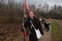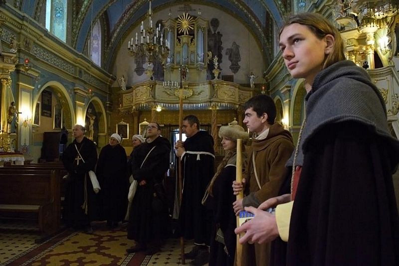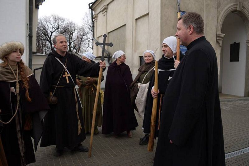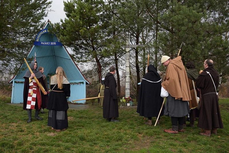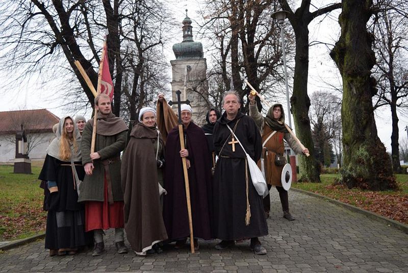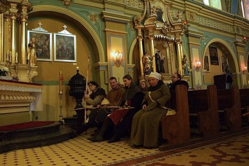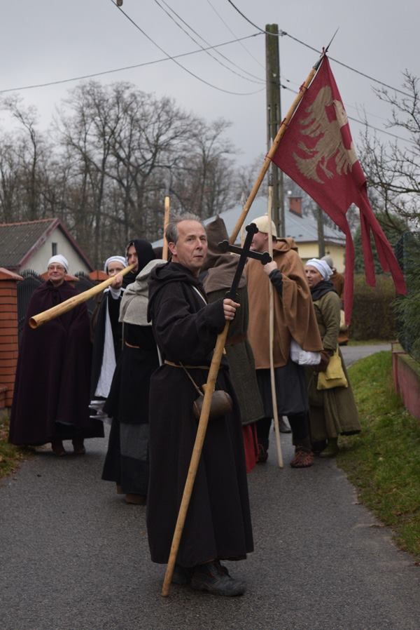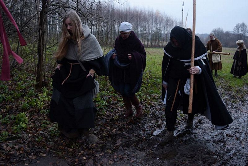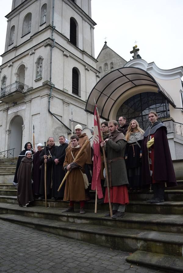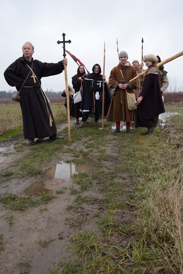 21 listopada pogoda nie rozpieszczała też grupy niezwykłych pielgrzymów, którzy w przejmującym chłodzie wędrowali do celu – do Sanktuarium Matki Boskiej Zwycięskiej w Odporyszowie. Rekonstruktorzy historyczni pielgrzymowali z włości Bagiennych spod Wieżycy, równie „bagiennym” szlakiem, z dala od głównych dróg dojazdowych, wprost przed oblicze Matki Boskiej Odporyszowskiej w Cudownym Obrazie.