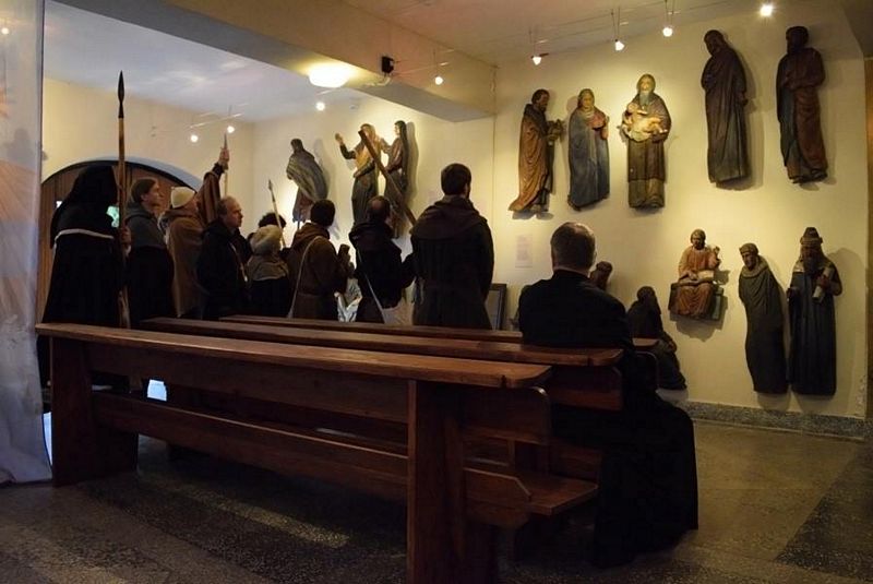 Dzięki uprzejmości kustosza Sanktuarium Matki Bożej Zwycięskiej pielgrzymi poznali historię Sanktuarium, ze szczególnym uwzględnieniem Cudownego Obrazu; obejrzeli fragment krzyża, na którym pojawiła się Matka Boska oraz wspaniale zachowane rzeźby w Muzeum Jana Wnęka.