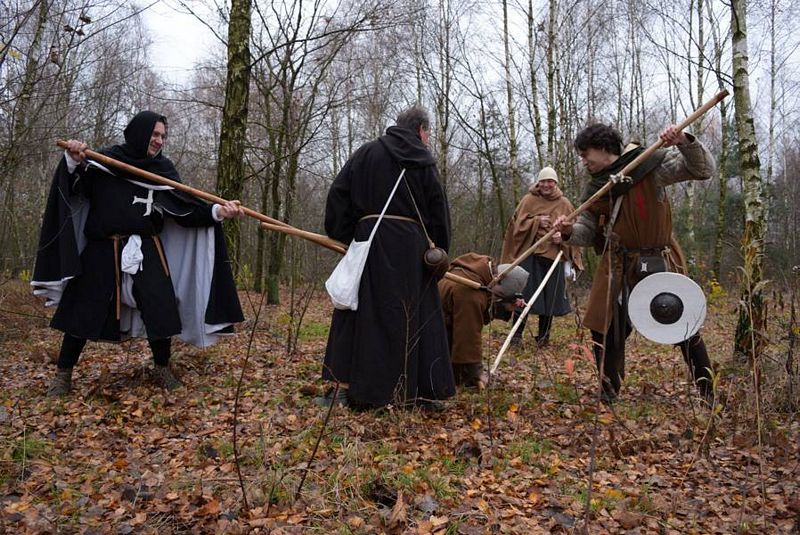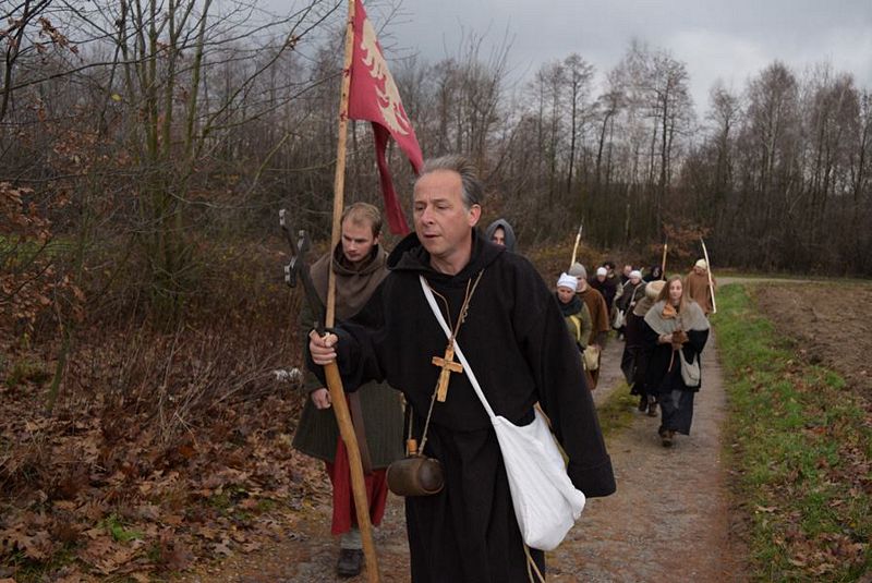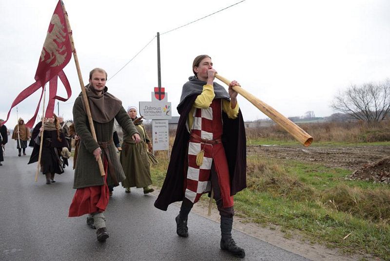 Tym razem Poczet Bagiennych z Wieżycy zaproponował niecodzienny przemarsz, w ramach treningów kondycyjnych grup rekonstrukcyjnych. Grupa 15. miłośników średniowiecza, w strojach historycznych, przez błota podobne jak na średniowiecznych szlakach, przemaszerowała w pielgrzymce z Oleśnicy do Odporyszowa.
