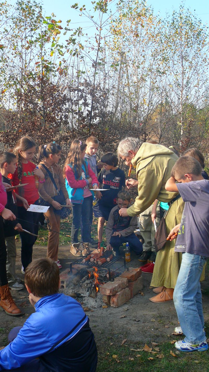 Można było przywdziać hełm i sprawdzić ile ważył miecz czy kolczuga. Rodzice uczniów zakupili produkty na poczęstunek dla uczestników, który organizatorzy przyrządzili nad ogniskiem na replice stosownego do omawianej epoki rusztu.