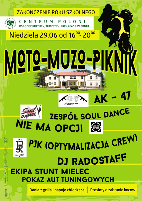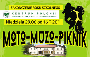 29 czerwca br. w Centrum Polonii – Ośrodku Kultury, Turystyki i Rekreacji w Brniu odbędzie się piknik na zakończenie roku szkolnego. Impreza pod hasłem MOTO-MUZO PIKNIK wystartuje o godz. 16 i potrwa do 20.