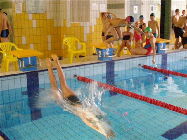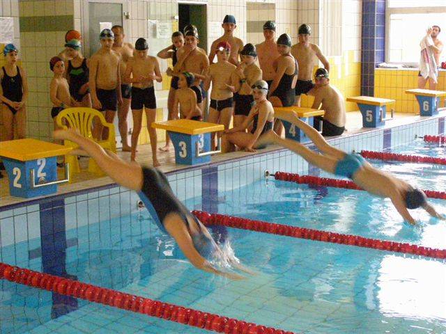 Zawodnicy sekcji pływackie mieli do przepłynięcia 50 m delfinem