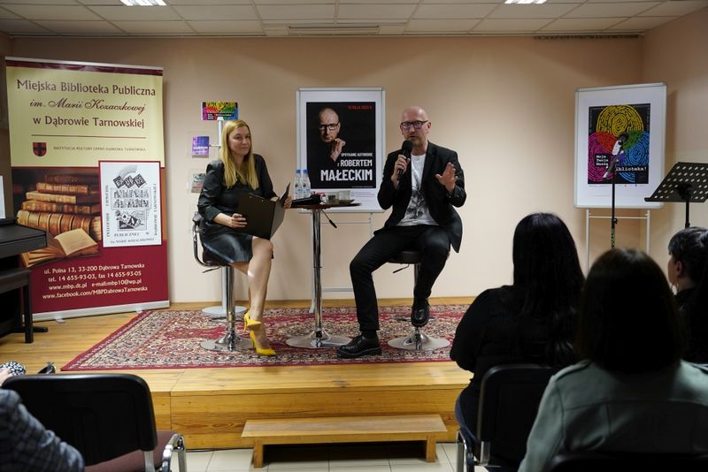 Nasza biblioteka tradycyjnie włączyła się w obchody święta bibliotek. Dział dla Dorosłych i Młodzieży przygotował wystawę pt. „Pokolenia w rękodziele”, na której wyeksponowano prace wykonane haftem krzyżykowym przez Joannę Kowal, czytelniczkę MBP i jej mamę, Annę Rychlińską. Wystawę można zwiedzać do 26 czerwca br. Jednym z kluczowych wydarzeń obchodów Tygodnia Bibliotek było spotkanie autorskie z Robertem Małeckim, jednym z najpoczytniejszych autorów kryminałów w Polsce. 12 maja autor spotkał się z czytelnikami i sympatykami naszej biblioteki, angażując się w prowadzenie indywidualnych rozmów z czytelnikami, podpisywanie książek oraz pozowanie do wspólnych zdjęć.
