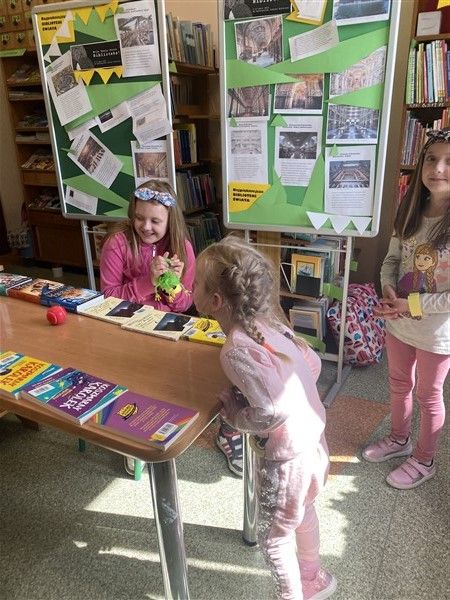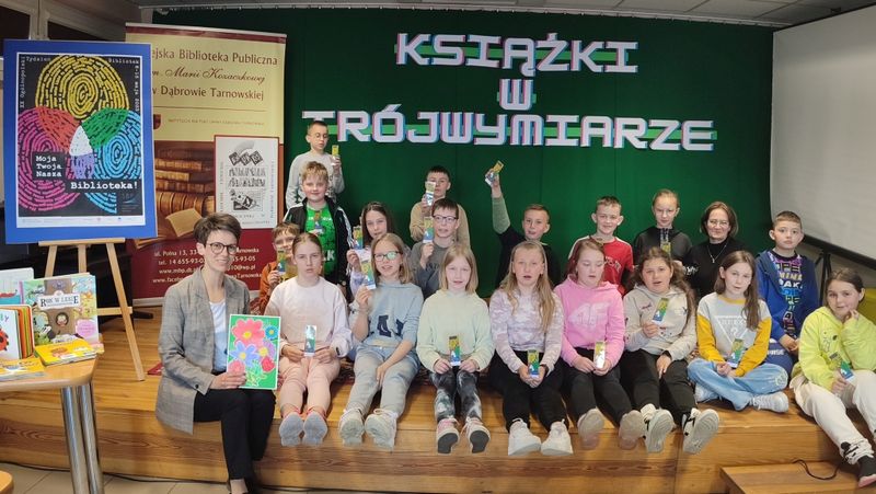 Oddział dla Dzieci w XX Tygodniu Bibliotek przygotował trzy wydarzenia. 8 maja ogłoszony został konkurs na krótki spot filmowy „Książka w mojej pasji” ilustrujący pasję naszych czytelników w każdym wieku i ich książkowe zamiłowania. Konkurs wciąż trwa, zgłoszenia przyjmowane są do 21 maja br. 10 maja odbyły się zajęcia czytelnicze dla uczniów klasy III a ze Szkoły Podstawowej nr 2 im. Mikołaja Kopernika w Dąbrowie Tarnowskiej. Szeroki wachlarz „książek w trójwymiarze” ukazany im został poprzez pogadankę, quiz, zabawę plastyczną. 12 maja w bibliotecznej „szkole” zasiadły chętne dzieci w wieku od 6 do 12 lat, aby poznać twórczość literacką Miry Jaworczakowej i przygody jej bohaterów. Popołudniowe zajęcia były okazją do doświadczenia na wesoło „nauki” w sali klasowej sprzed lat.