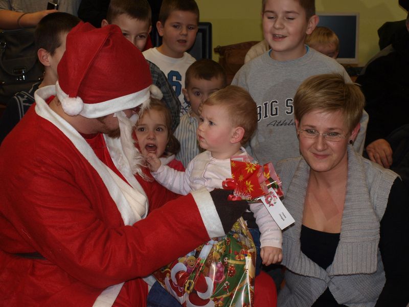 Najpierw 6 grudnia w „Centrum Osiedlowym” we współpracy ze Spółdzielnią Mieszkaniową i przy wsparciu rad osiedlowych przybysz z dalekiej Laponii spotkał się z setką zgłoszonych dzieci i rozdał wszystkim paczki pełne łakoci, żartując przy tym i fotografując się z każdym milusińskim.