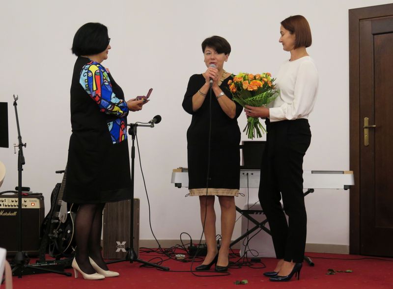 O oprawę artystyczną wieczoru zadbał dobrze znany dąbrowskiej publiczności zespół muzyczny Obywatele DT, który zaprezentował autorski repertuar pt. „Poetycka podróż” przygotowany specjalnie na tę okazję oraz własne aranżacje kilku znanych utworów. Uroczystość prowadziła p.o. Dyrektora MBP Anna Jastrzębiec-Witowska. Jednym z najbardziej doniosłych momentów wydarzenia było wyróżnienie Pani Jadwigi Kusior Honorową Odznaką Stowarzyszenia Bibliotekarzy Polskich. Ceremonii wręczenia dokonały przedstawicielki Okręgu i Oddziału SBP w Małopolsce.
