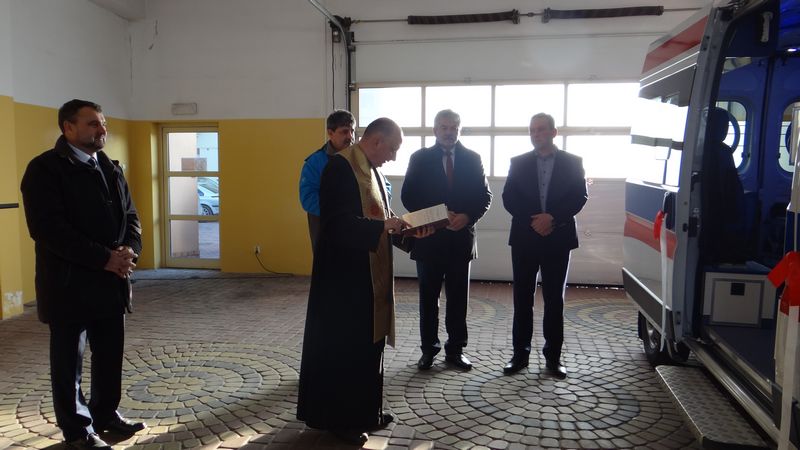 W uroczystym przekazaniu ambulansu udział wzięli przedstawiciele samorządu powiatowego oraz pracownicy szpitala. Poświęcenia nowej karetki dokonał ks. Zbigniew Szewczyk. Duchowny modlił się za tych wszystkich, którzy korzystać będą z tego ambulansu, śpiesząc z pomocą chorym i cierpiącym.