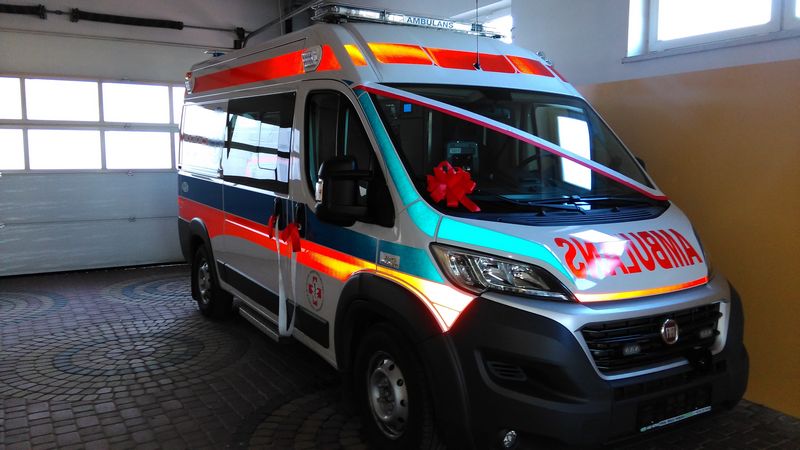 Nowa karetka Fiat Ducato wyposażona jest w silnik o mocy 3l, zasilana olejem napędowym o mocy 180km. Obsadę karetki, stanowią 3 osoby medyczne.
